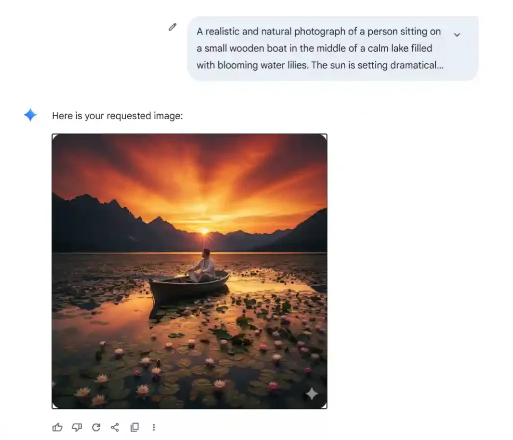 All you need is to write a prompt in ChatGPT asking what you need, as you can relate, and later on, after completing your query under “(Your required query)”. For example you need a prompt for generating an image in Gemini Flash 2.5 you can Chat GPT ” I want you to write a prompt for generating an image of a person sitting in a lake full of lilies and the sun is setting behind the mountain Which should be dramatically red The image should look natural and realistic and well composed photograph the should be sitting on the wooden boat.” As you can see, this prompt is not well written, and you’re asking the Chat GPT to organise your thought in better way as prompt.